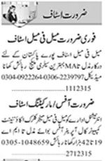 Educational qualifications required Master, Middle, Matric, Bachelor and Intermediate etc.