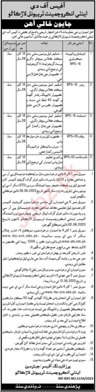 Office Of Tribunal Anti Encroachment Larkana Jobs 2023