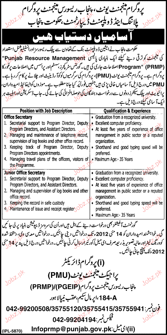 Latest Government Admin Clerical Posts Lahore 2025