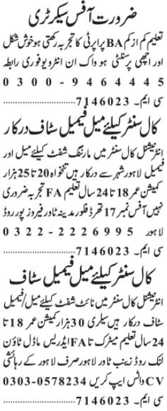 Office Secretary & Call Center Agent Jobs 2024 In Lahore