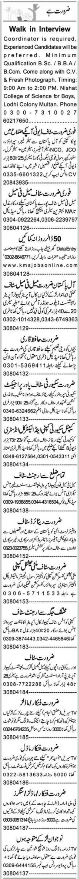 Private Company is looking for candidates for following posts as per job advertisement published in daily Express Newspaper of February 1, 2022 for location Multan Punjab Pakistan:
