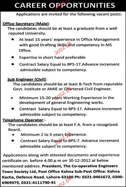 Office Secretary, Sub Engineers Job Opportunity