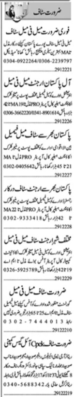 Vacant posts including accountant, retired havaldar, management staff, office staff, retired naib subedar, retired sepoy, retired subedar major, male female staff, helper, manager, retired subedar, clerk, retired naik, call operator, office boy and pro are announced in Private Lahore, lahore Punjab Pakistan as per 29 December 2022 advertisement in daily Dunya Newspaper. Candidates with Matric, Middle, Master, Intermediate and Bachelor etc. educational background will be preferred.