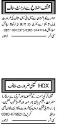 Private Company jobs advertisement dated about 21 December 2023 in daily Khabrain Newspaper invites application for the vacant post of female office staff, canteen contractor, barber and office staff in Lahore, lahore Punjab Pakistan. Candidates with Intermediate, Matric, Bachelor, Middle and BA etc. educational background will be preferred.