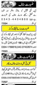 A private well known and well established company is seeking services of hardworking and experienced candidates for the posts of Security Guard, Sales Executive, Sales Assistant, Helper, Manager, Supervisor, Admin, Assistant, Computer Operator, Phone Operator, Clerk in Lahore. Interested candidates can contact for more details.