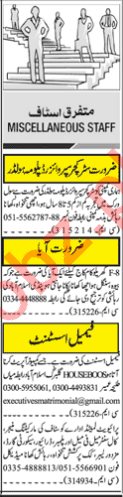 Computer Operator, Manager, Marketing Manager, Call Operator, Telephone Operator, Receptionist, Clerk, Admin Manager, Admin Officer, Assistant Manager, Clerk, Security Guard, Driver required for the well known private multinational companies located in Rawalpindi.