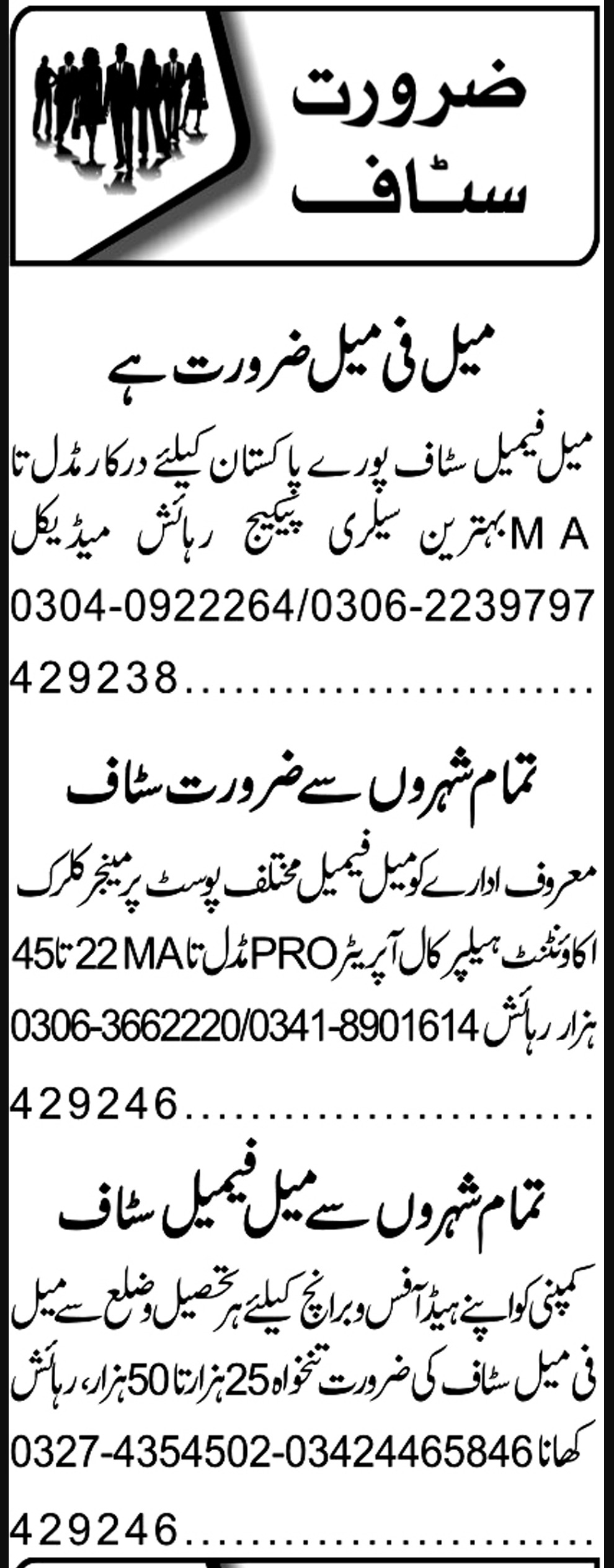 Private Company Multan, multan Punjab Pakistan invites applications from eligible candidates for the post of male staff, call operator, female staff, public relations officer, manager, helper, pro and accountant as per advertisement of February 27, 2023 published in daily Roznama 92 News Newspaper. Educational qualifications required Bachelor, Middle, Matric, Intermediate and Master etc.