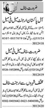Private Company invites applications for job positions advertised in daily Dunya dated 30 January 2024 for following vacancies in Lahore, lahore Punjab Pakistan.
