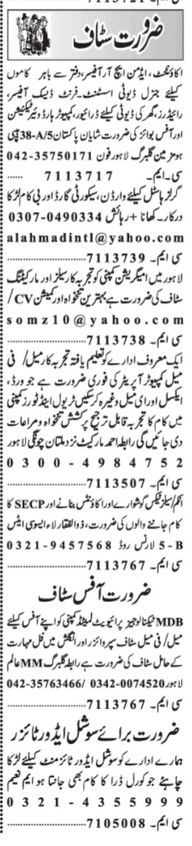 Private Company invites applications for job positions advertised in daily Jang dated 25 February 2022 for following vacancies in Lahore, lahore Punjab Pakistan.