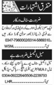 Private Company invites applications for job positions advertised in daily Khabrain dated 24 June 2022 for following vacancies in Rawalpindi, lahore Punjab Pakistan.