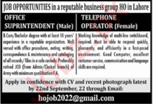 Business Group is looking for candidates for following posts as per job advertisement published in daily Jang Newspaper of September 11, 2022 for location Lahore, lahore Punjab Pakistan:
