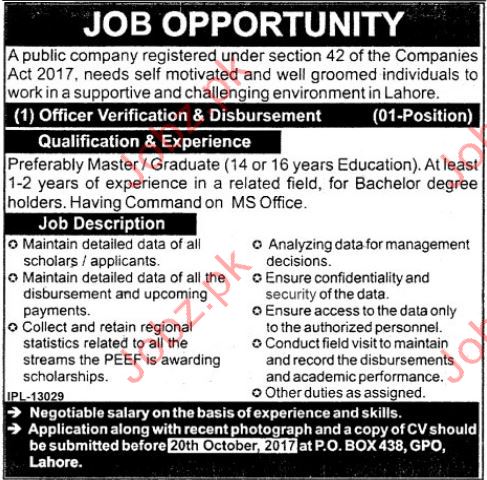 Act 2017, needs self motivated and well groomed individuals to Work In A supportive and challenging environment in Lahore.