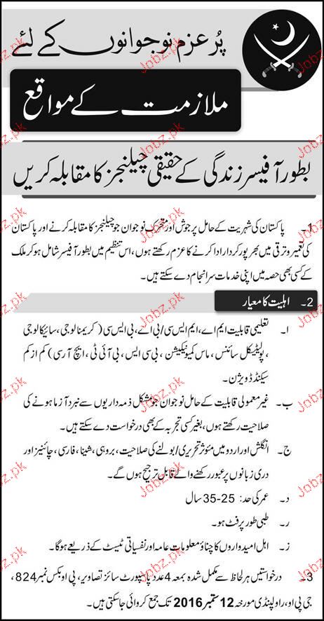 Apply as per details in job advertisement. Login to view further details of how to apply via https://www.jobz.pk online.