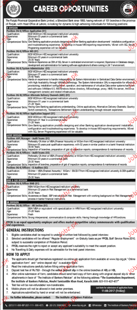 Apply as per details in job advertisement. Login to view further details of how to apply via https://www.jobz.pk online.