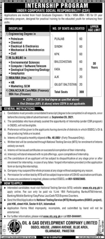 Vacancies in Oil and Gas Development Company Limited OGDCL Advertisement August 2021