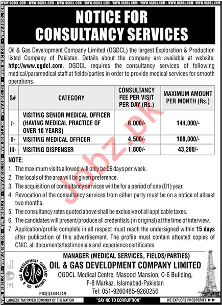 Latest Oil & Gas Development Company Limited OGDCL Medical Posts Islamabad 2025