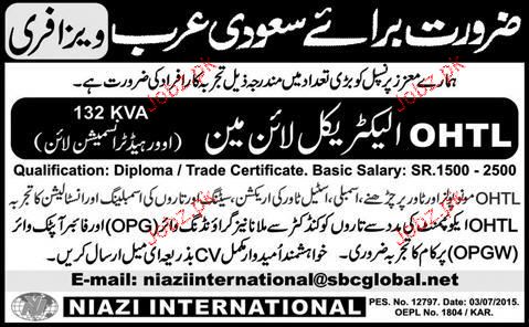 OHTL Electrical Linemen Job Opportunity