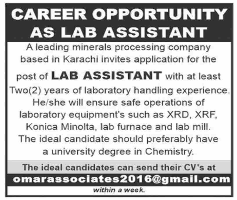 Al Omar Associates invites applications for job positions advertised in daily Dawn dated 8 December 2024 for following vacancies in Karachi, karachi Sindh Pakistan.
