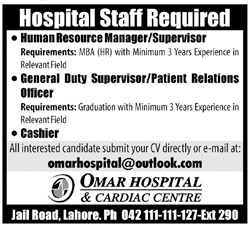 Vacancies in Omar Hospital & Cardiac Center Advertisement November 2018