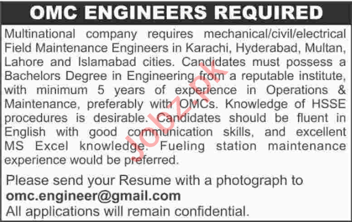 OMC Engineer & Mechanical Engineer Jobs 2020 in Karachi