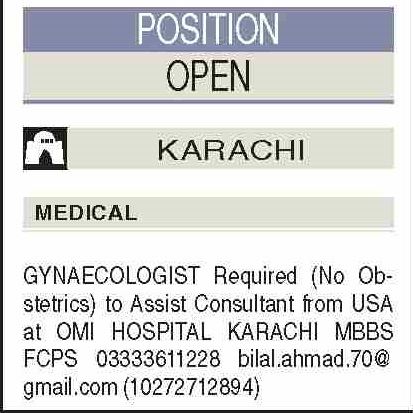 OMI Hospital Karachi, karachi Sindh Pakistan invites applications from eligible candidates for the post of doctor, lady doctor, rmo, gynecologist and resident medical officer as per advertisement of September 24, 2022 published in daily Dawn Newspaper. Preferred Education is Others and MBBS etc.