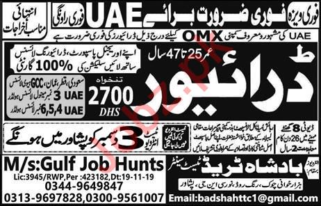 OMX Company Job 2019 For Driver In United Arab Emirates UAE
