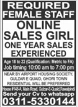 Online Sales Girl Jobs In Rawalpindi