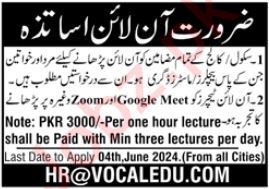 Educational Institute Lahore, lahore Punjab Pakistan invites applications from eligible candidates for the post of online teacher as per advertisement of June 2, 2024 published in daily Jang Newspaper. Educational qualifications required Bachelor and Master etc.