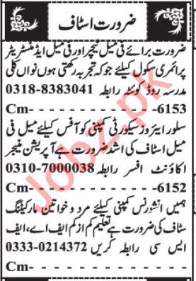 Vacancies in Private Company Advertisement September 2020