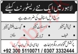 Restaurant Lahore, lahore Punjab Pakistan invites applications from eligible candidates for the post of assistant manager, chef, waiter, operation manager, order taker and guest relationship manager as per advertisement of September 10, 2023 published in daily Jang Newspaper. Bachelor, Matric, Intermediate and Middle etc. educational qualification will be preferred.
