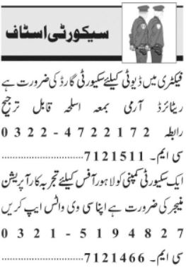 Latest Security Company Security Posts Lahore 2025