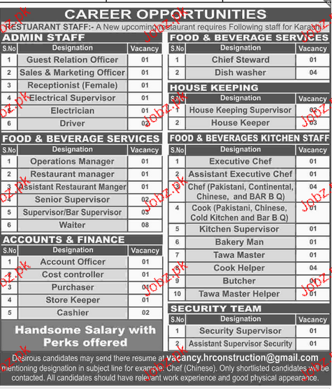 Apply as per details in job advertisement. Login to view further details of how to apply via https://www.jobz.pk online.