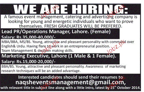 Apply as per details in job advertisement. Login to view further details of how to apply via https://www.jobz.pk online.
