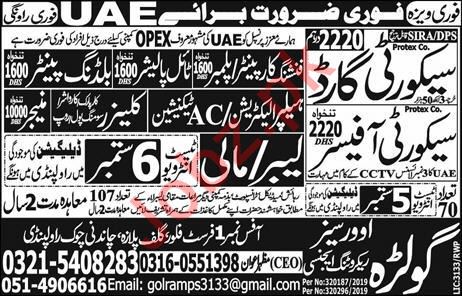 Vacancies in Golra Overseas Recruiting Agency Advertisement September 2019