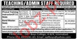 Latest OPF Boys College Teaching Posts Islamabad 2025