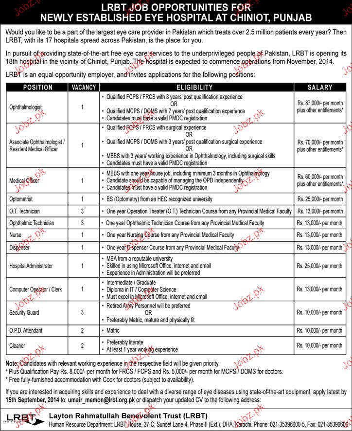 Opthalmologist, Associate Opthalmologist Job In LRBT