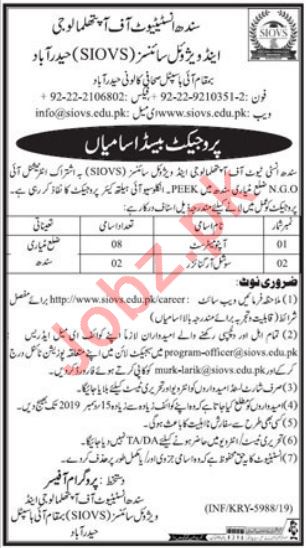Vacancies in Sindh Institute of Ophthalmology & Visual Sciences SIOVS Advertisement December 2019