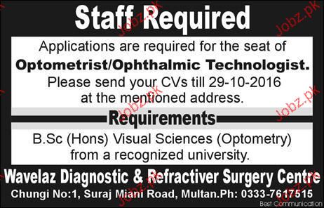 Optometrists / Ophtmalmic Technologists Job Opportunity