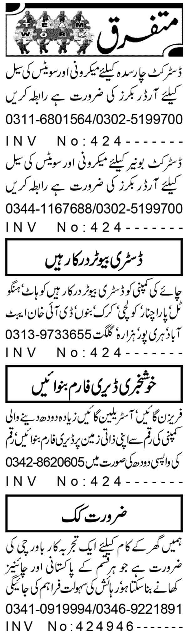 Latest Human Resource jobs and others Classifieds jobs in Private Company closing date is around October 29, 2023, see exact from ad. Read complete ad online to know how to apply on latest Private Company job opportunities. Order Processing, Sales and Cooking skills may beneficial for these Private Company jobs. During job accommodation facility is available.