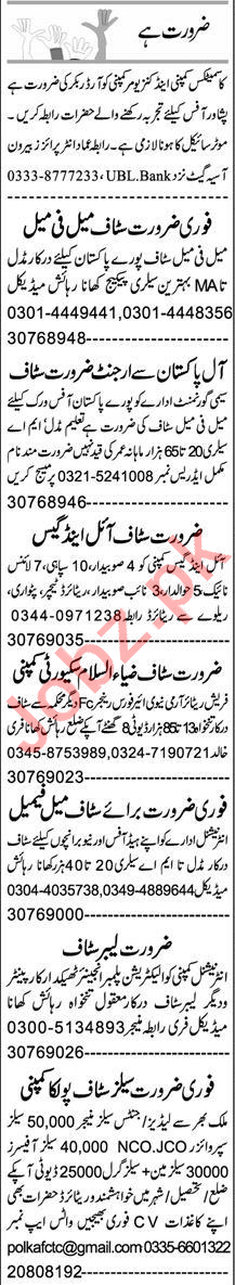 Order Booker, Graphic Designer, Hardware Technician, Software Engineer, Computer Programmer, Computer Operator, Data Entry Operator, Auto CAD Operator, PHP Developer, Sales Manager, Relationship Officer, Sales Representative, Sales Manager, Sales Coordinator, Clerk, Security Guard, Driver seeks in well reputed companies.