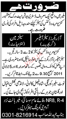 Order Booker / Sales Officer and Salesman Job Opportunity