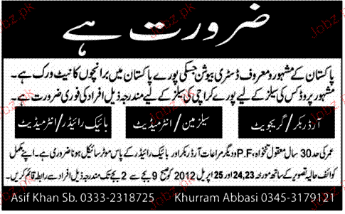 Apply as per details in job advertisement. Login to view further details of how to apply via https://www.jobz.pk online.