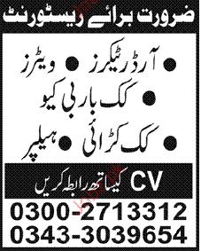 Order Takers, Waiters, Cook And Helper Job Opportunity