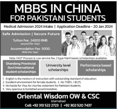 Oriental Wisdom OW & CSC MBBS Admissions 2024