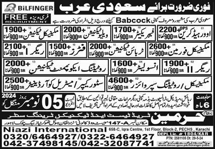 Harmain Trade Test & Technical Training Center is looking for candidates for following posts as per job advertisement published in daily Express Newspaper of November 4, 2024 for location Saudi Arabia, saudi arabia Saudi Arabia: