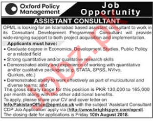 Oxford Policy Management Islamabad OPML Asst Consultant Jobs