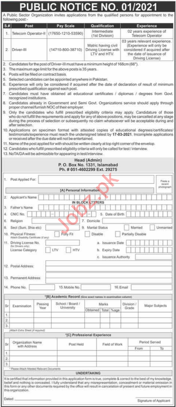P O Box No 1331 Islamabad Jobs 2021 for Telecom Operator videos cover how to fill Public Sector Organization application form, merit list, Public Sector Organization test preparation, test pattern, syllabus, download pdf book, Public Sector Organization job test date & time schedule, Public Sector Organization medical test and result etc.