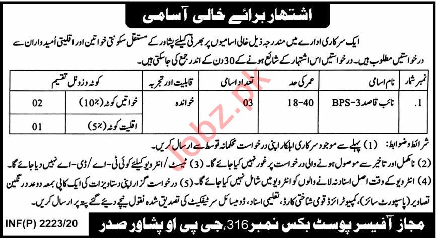 P O Box No 316 GPO Peshawar Saddar Jobs 2020