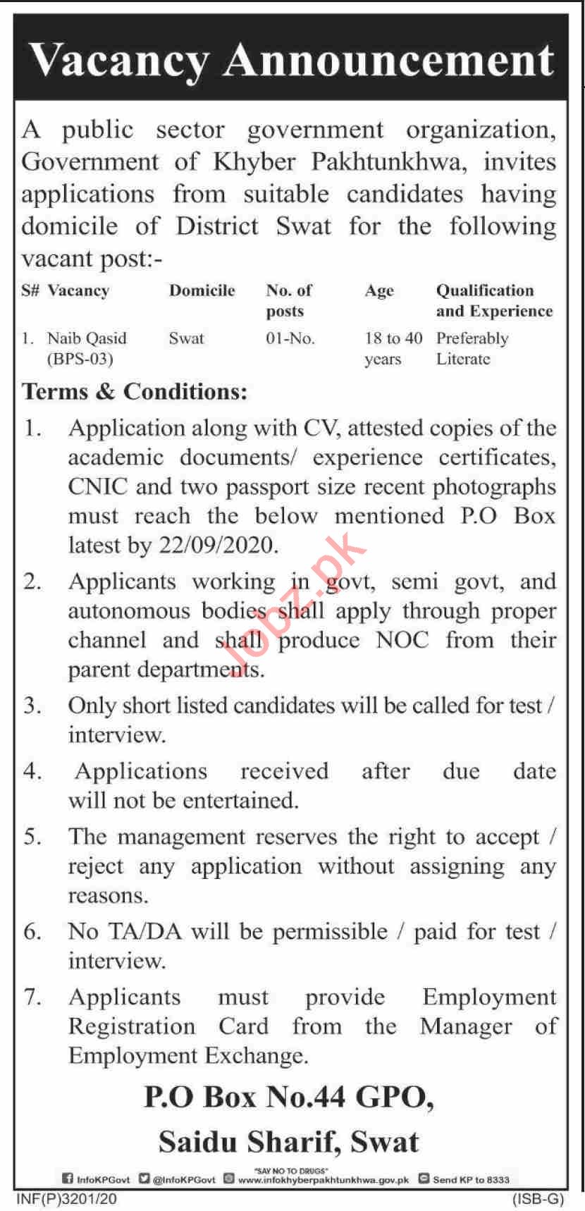 P O Box No 44 GPO Saidu Sharif Swat Jobs 2020