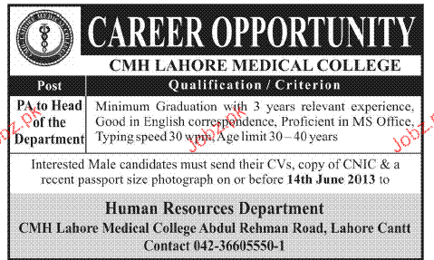 Latest CMH Lahore Medical College Admin Clerical Posts Lahore 2025